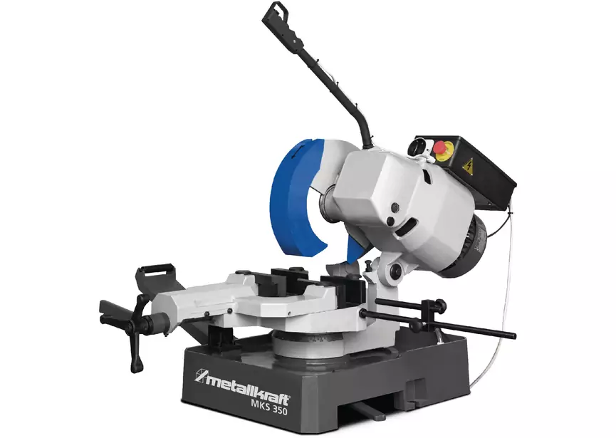Manuelle Kreissäge für ein Kreisblatt mit einem Durchmesser von 350 mm, zwei Geschwindigkeiten und Sägekopf und verstellbarem Schraubstock in einem Winkel. “Made in EU”.